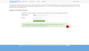 - A notice with be displayed (1) letting you now the process is complete and the “Upgrade to Company Account” page will be refreshed momentarily.