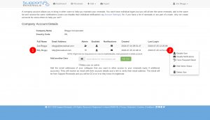 - Delete User – premanently remove the user account. This DOES NOT remove any renewals in the company account.